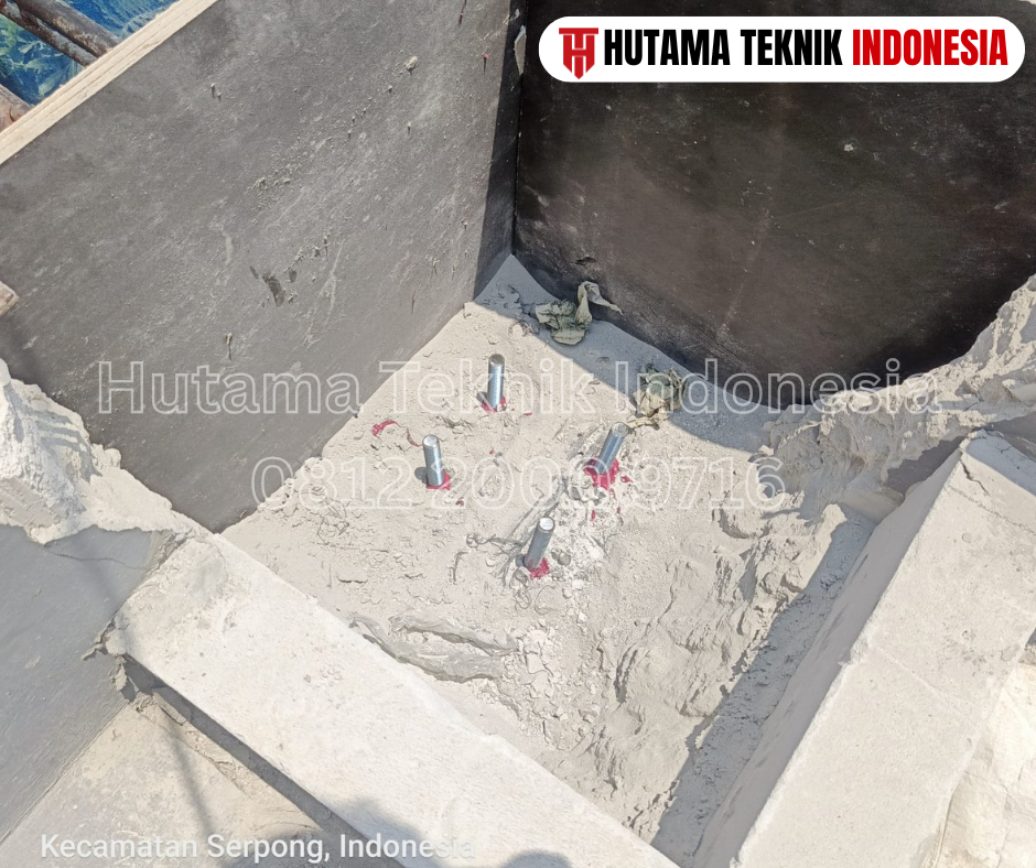 - Pemasangan Anchor : Baut atau besi angkur dimasukkan secara perlahan hingga mencapai kedalaman yang ditentukan.